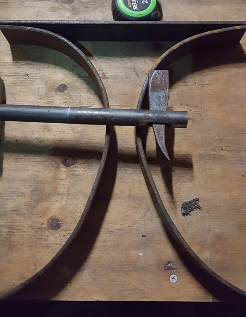 Base is handmade from 4 inch x 4 inch metal tubing. It is natural color with a clear coat. This size table is very hard to find in one solid slab. If you want a different base, one can be made for no additional cost.
